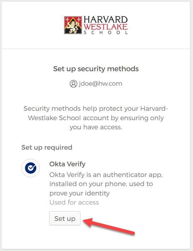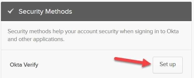 Under Security Methods, click the Set up button next to Okta Verify.