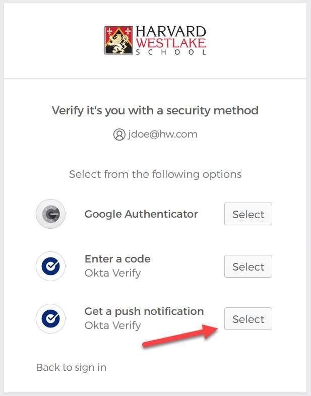 After entering your username and password, you'll have more options to choose from. Select "Get a push notification".